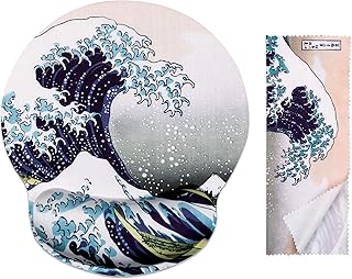 One In A Millionaire 手首の手のサポートが付く人間工学的の設計のマウスパッド。丸い大きなモズエリア。メガネやスクリーン用のマイクロファイバーのクリーニングクロスを合わせる。 メモリフォーム手首サポート 神奈川県沖大波葛飾北斎