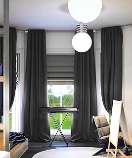 寝室用遮光カーテン 長さ63インチ 2枚 リビングルーム カーテン ドレープ 部屋を暗くするウィンドウカーテン ダークグレー アウトレット コルティナ サーマルライトブロック ハトメ 防音 ドレープ