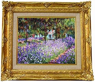 世界の名画 クロードモネ モネの庭、アイリス ジクレーキャンバス複製画F3号豪華額装品