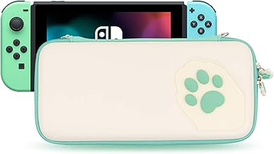 Geekshare Switch ケース switch oled 対応 有機ELモテル対応 2021 Switch OLED専用ケース ニンテンドー スイッチ ケース Nintendo Switch対応 収納ケース 可愛い収納バッグ 任天堂スイッチ収納バッグ 全面保護 持ち運び便利 ゲームカード10枚収納 Switch対応 猫肉球収納ケース 白と緑