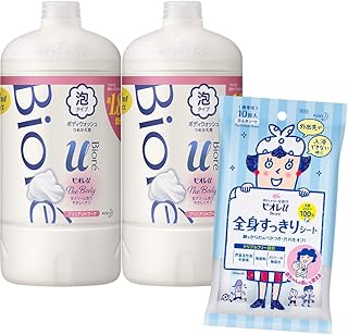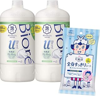 ザ ボディ 〔 The Body 〕 泡タイプ ピュアリーサボンの香り つめかえ用 800ml×2個 + ビオレu 全身すっきりシート 10枚入 ボディソープ 清潔感のあるピュアリーサボンの香り 3個アソート