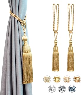 CMD カーテンのリボン 2個セット カーテン フック 飾り カーテン アクセサリー ロープタッセル 紐 締め 房掛け バックル ロープ式 カーテンタッセル バックル ホルダー おしゃれ マグネットフック タッセル カーテン カーテン マグネット (AA(ゴールド))