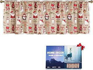 Sauta Claus キッチンウィンドウバランス カーテン メリークリスマス クリスマス 鹿 52x18インチ ショート ハーフ バスルーム カーテン ドレープ パネル 農家 冬 ギフト ホリデー 装飾 遮光 カーテン トッパー ロッドポケット付き