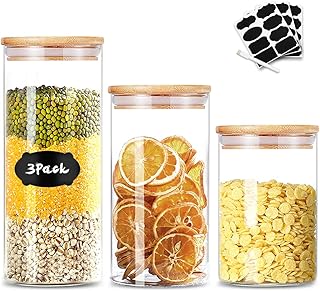 Nialnant キッチンキャニスター 3個セット ガラス製食品保存容器 容器 密封竹蓋付き バスルームやパントリーの整理に クッキー/コーヒー/スナック/ライス/スパイスジャーに最適 (3個)