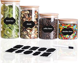 TIANGR ガラスストレージジャー 4パック 26/34/45/52オンス 気密フードコンテナ 竹の蓋付き キッチンキャニスター お茶 コーヒー豆 キャンディ クッキー ナッツ ステッカーとマーカー付き