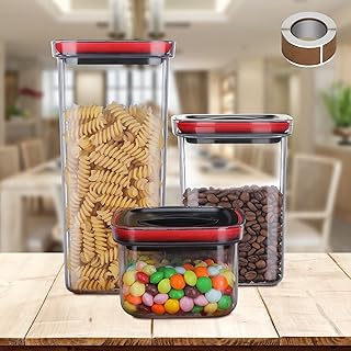 食品保存容器セット キッチンキャニスター 3個パック プラスチック容器 蓋付き 食品グレードキャニスター プラスチックジャー 空白ラベル120枚付き 密閉食品保存容器 シリアル/小麦粉/砂糖用