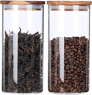 クリアガラスキャニスタージャーコンテナセット 食品保存用 密閉木製蓋 キッチンキャニスター 密封ガラス容器 木製蓋 茶 コーヒー 豆 ナッツ キャンディ クッキー 47液量オンス 2個セット