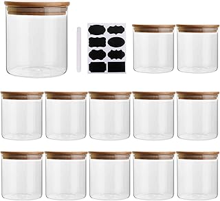 8オンス/250ml クリアガラス 食品保存容器セット 気密フードジャー 竹の蓋付き キッチンキャニスター 砂糖 キャンディ クッキー ライス スパイスジャー用 12個セット