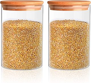 Akamino 食品保存容器 ガラス製 食品保存容器 密閉竹製蓋付き キッチンキャニスター コーヒー 砂糖 キャンディ クッキー ライス スパイス 550ml 2パック
