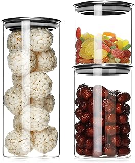 ガラスストレージジャー 20オンス 33オンス 54オンス ガラス食品ストレージコンテナ 3個セット 密閉食品ジャー ステンレススチール蓋付き キッチンキャニスター 砂糖 キャンディ クッキー ライス スパイスジャーの提供に