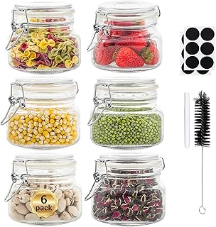 ガラス製タコ 6パック 17オンス 密閉ガラス容器 密閉ジャー 漏れ防止ゴムガスケット付き クリアガラスストレージジャー ピクルス スパイス キャンディ ジャム クッキー ピクルス 果物 キャンディ 紅茶 クッキー 500ml (四角)
