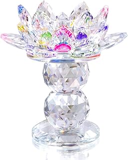 H&D HYALINE & DORA カラフルクリスタルロータスキャンドルホルダー ホーム装飾 4.5インチ