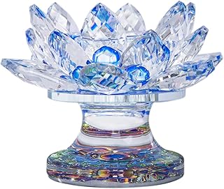 H&D HYALINE & DORA ブルークリスタルロータスフラワーキャンドルホルダー クリスタルティーライトキャンドルホルダー 4.3インチ