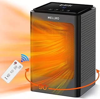 MELLRO ヒーター セラミックヒーター 自動首振り 電気ストーブ リモコン付き タイマー機能 1500W 1秒速暖 3段階切替 転倒自動オフ 過熱保護 セラミックファンヒーター 足元 ファンヒーター 省エネ 暖房器具 台座ライト付 寝室 脱衣所 日本語説明書付 一年保証 ブラック